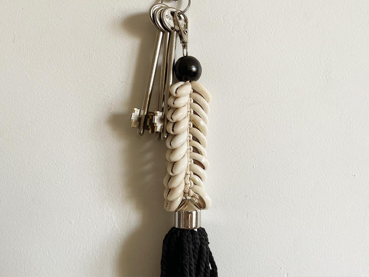 Брелок со срезами каури и черной кистью