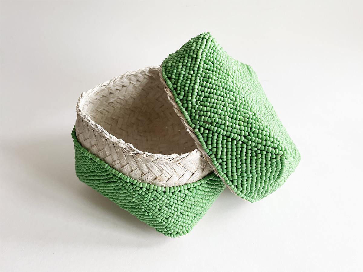 Коробочка церемониальная 12см зеленая с белым